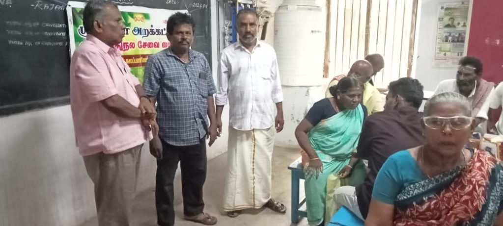 கண்புரை நோயாளிகள் அரவிந்த் கண் மருத்துவமனைக்கு அனுப்பப்பட்டனர். அறக்கட்டளை சார்பில் முழுமையான ஒருங்கிணைப்பு செய்யப்பட்டது.